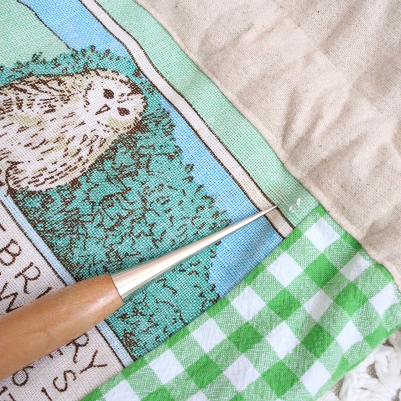 布製のused・vintageタペストリー(ティータオル)をリメイクしています。