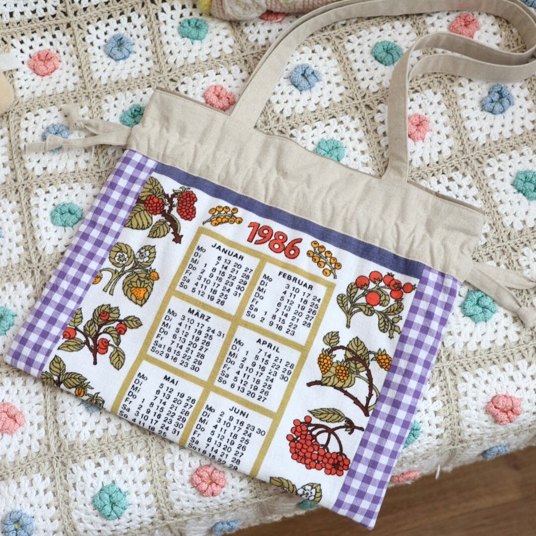 カレンダー生地は残布を同封しておりますが、作品に全面配置ができたカレンダーbagには内ポケットの共布のご用意となります。