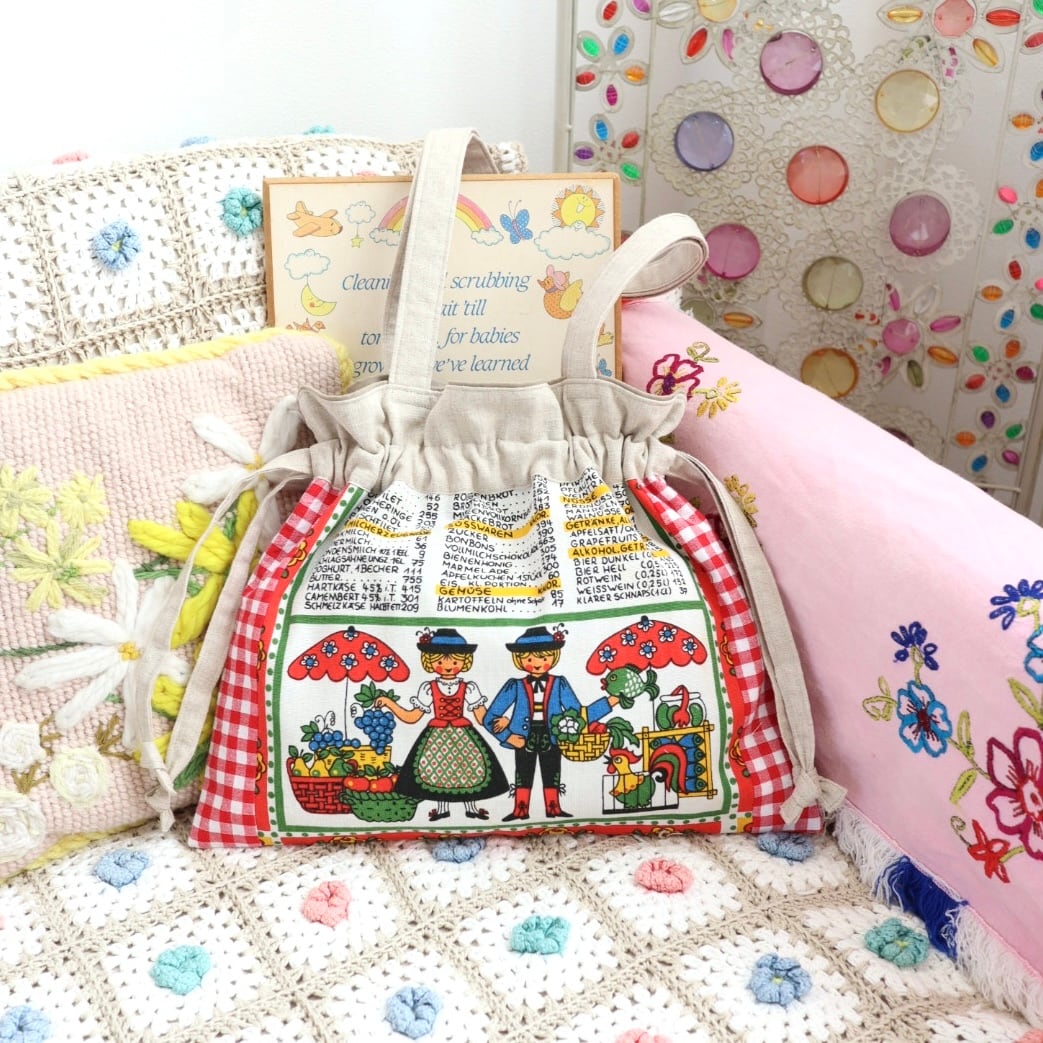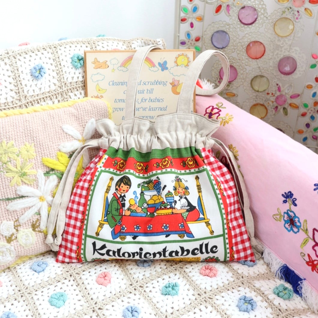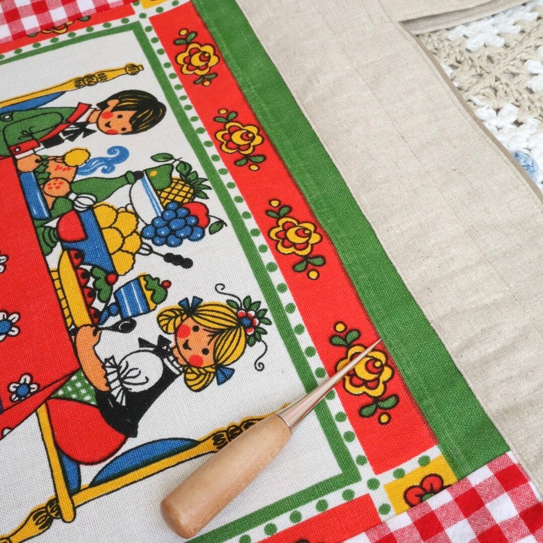 布製のused・vintageタペストリー(ティータオル)をリメイクしています。