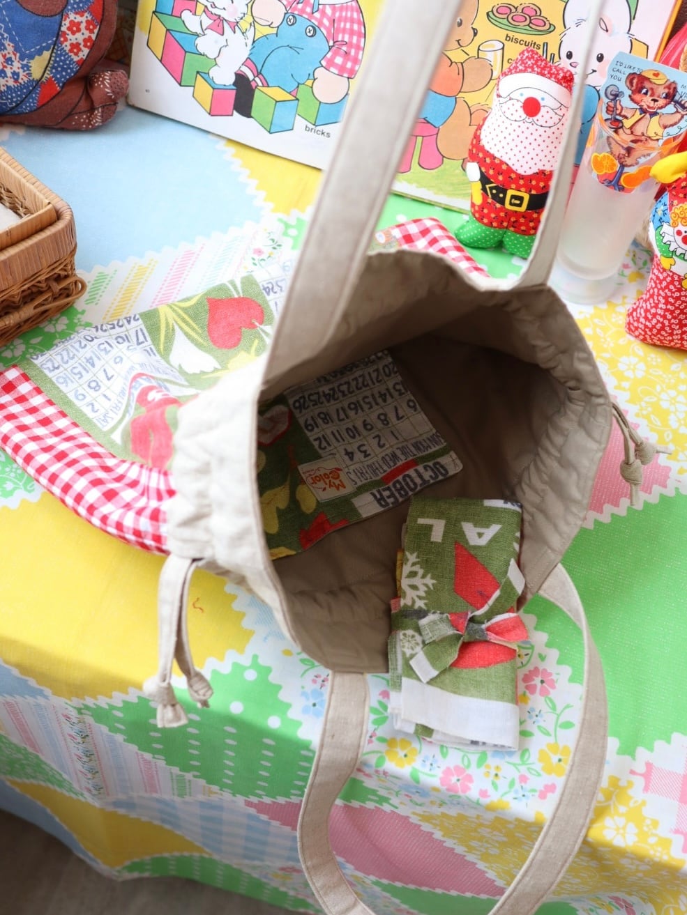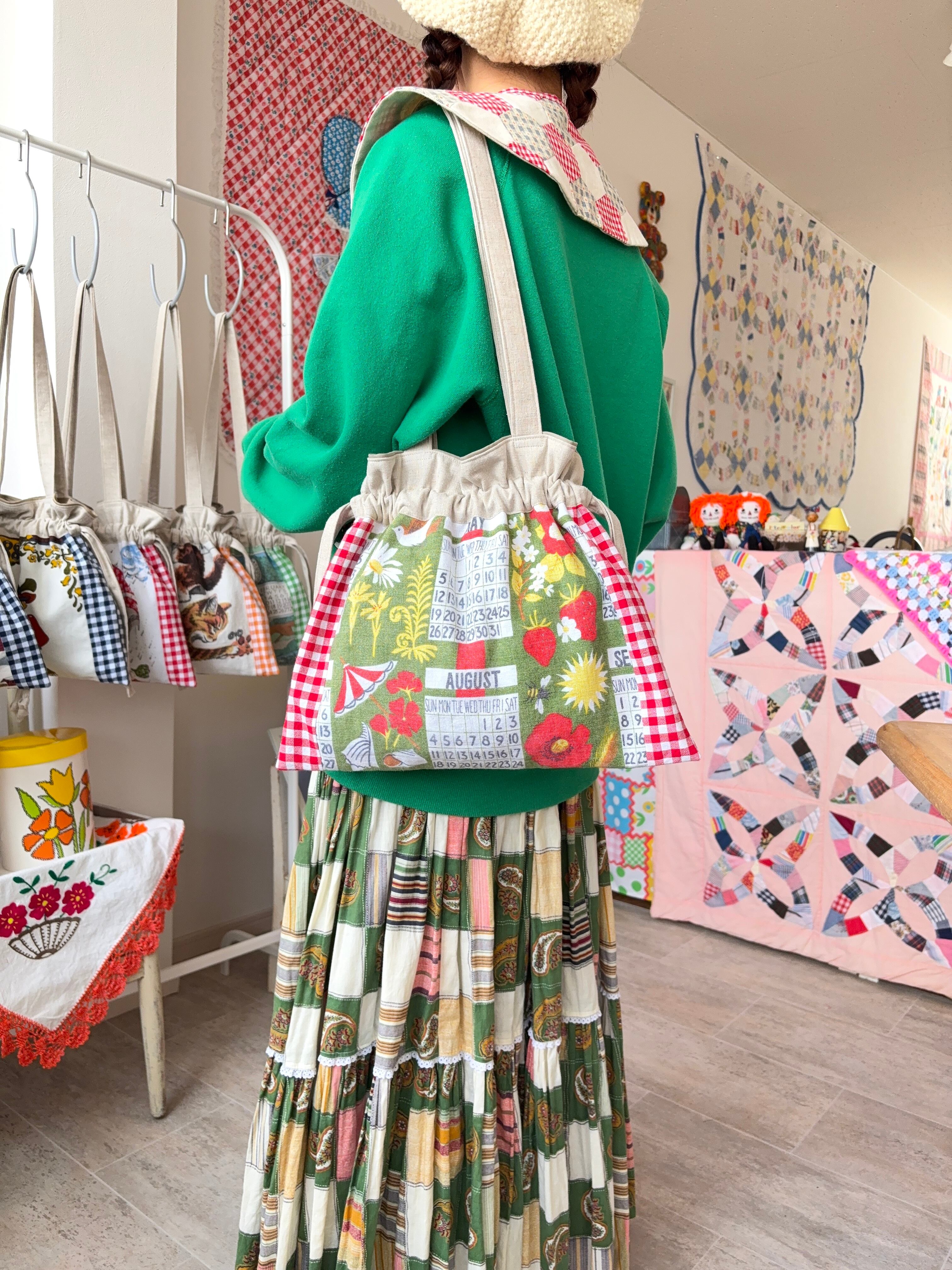 カレンダー生地は残布を同封しておりますが、作品に全面配置ができたカレンダーbagには内ポケットの共布のご用意となります。