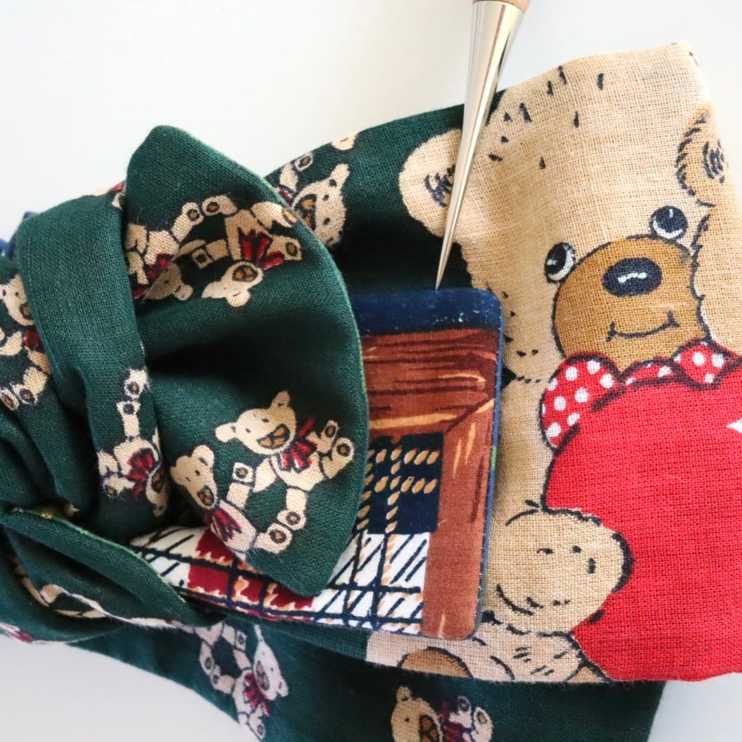 写真5枚目のようにリボンを裏側に巻き替えると土台と違う柄の組み合わせを楽しめます