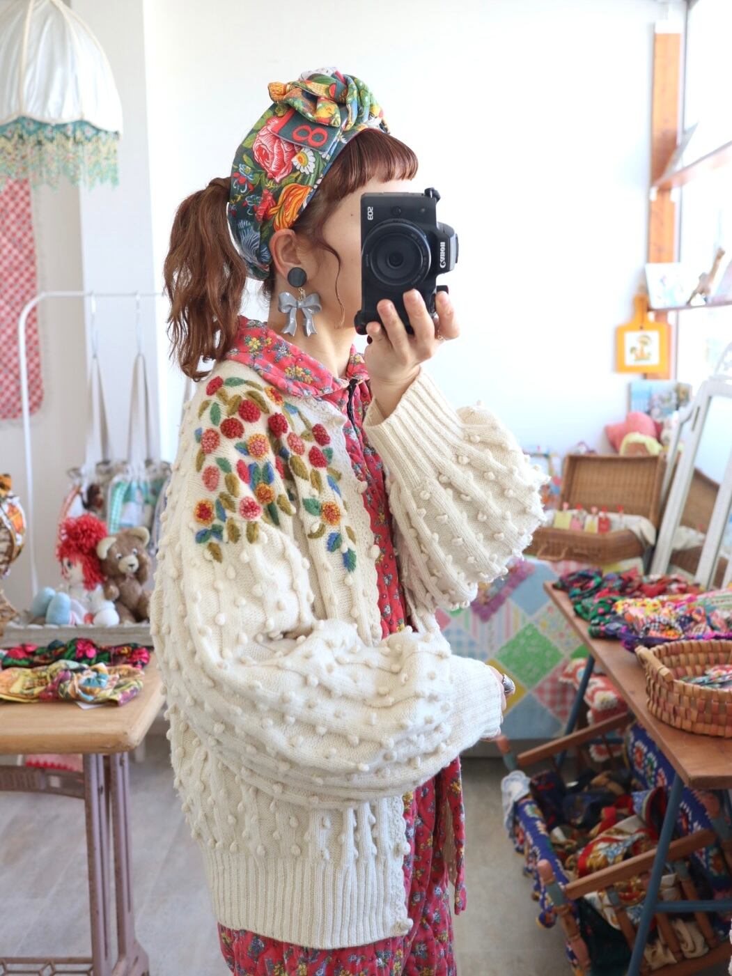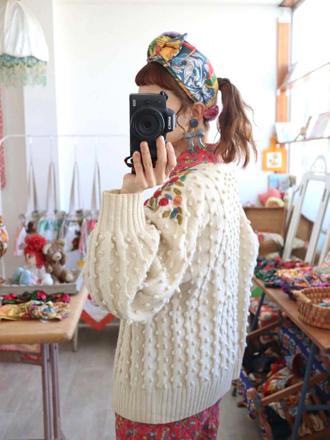 絵画のように美しい色使いと魅力的なプリントは、古着の装いにはもちろんシンプルなコーディネートにも主役になってくれるワンポイントに。